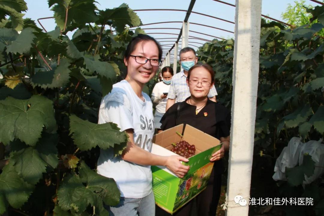 得知这个事情之后,2020年7月6日下午,淮北和佳外科医院党支部组织“志愿者服务队”,来到杜集区坡里镇的葡萄园,帮助果农徐文英采摘、搬运、包装等;