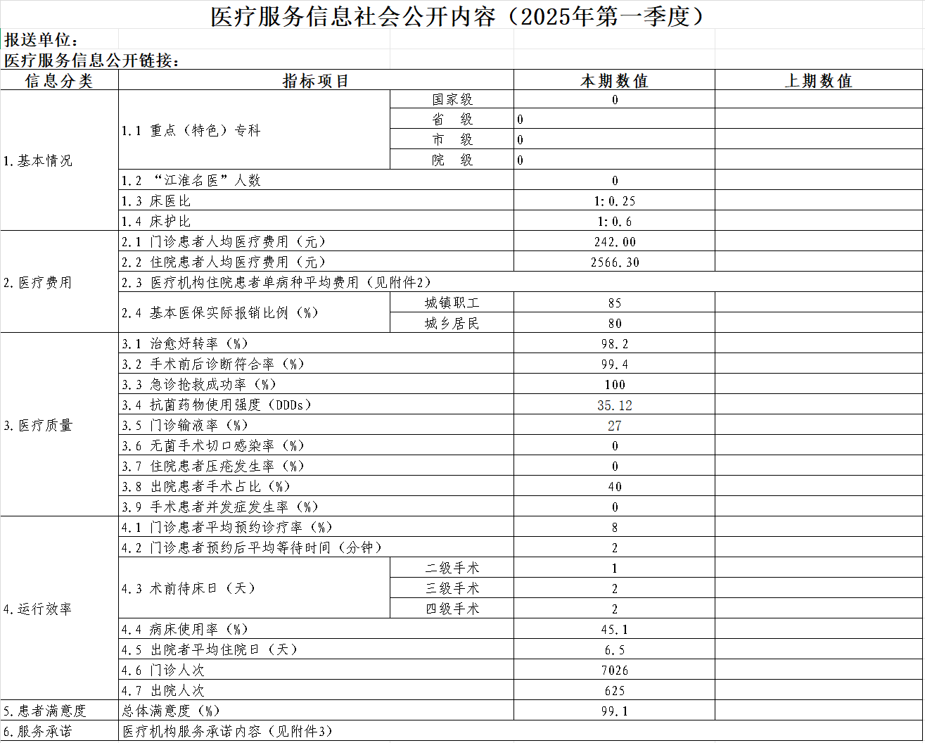 医疗服务信息社会公开内容(2025年第一季度)